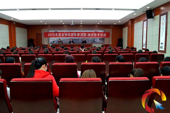 本網訊 (記者 周燕玲 實習記者 李浩) 3月24日上午,2015年全州導游年審(崗前)繼續教育培訓在風情園啟動,300余名持導游資格證人員參加培訓,州旅委主任范鐘聲、副調研員胡浩宇,貴州苗疆侗鄉旅游股份有限公司董事長王剛出席開班儀式。