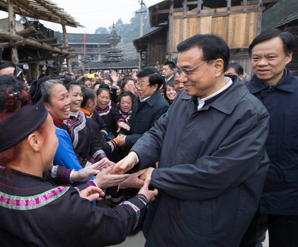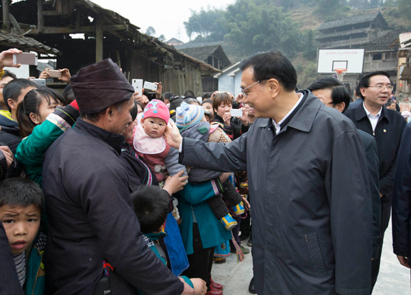 一邊是峭壁,一邊是深崖,急轉(zhuǎn)彎一個(gè)接一個(gè),狹窄的道路經(jīng)常只容單車(chē)通行。山路上顛簸一小時(shí)后,李克強(qiáng)13日下午走進(jìn)黎平縣大山深處的侗族寨子蒲洞村。這個(gè)國(guó)家一類(lèi)貧困村的貧困人口比例超過(guò)43%,年人均純收入只有2160元,許多房子四面透風(fēng)。