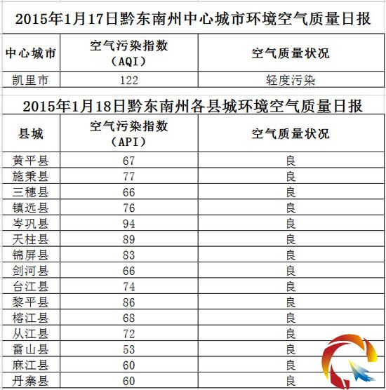 2015年1月18日黔東南州各縣(市)環境空氣質量日報