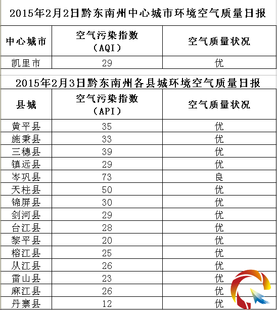 2015年2月3日黔東南州各縣(市)環境空氣質量日報