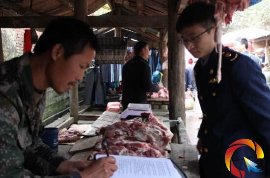 本網(wǎng)訊 為進(jìn)一步加強(qiáng)對肉食經(jīng)營行業(yè)監(jiān)管,規(guī)范肉類流通市場秩序,促進(jìn)肉品市場健康發(fā)展。1月6日,榕江縣工商局聯(lián)合當(dāng)?shù)卣⑿竽琳镜裙?人在平江鄉(xiāng)開展肉品市場整治行動。