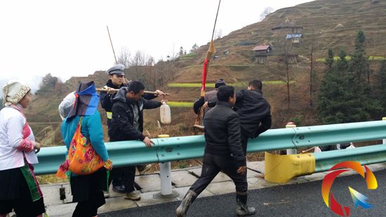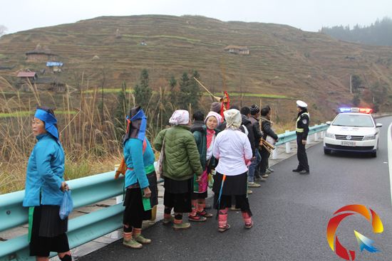 據(jù)了解,他們是貴州省榕江縣八開鄉(xiāng)高隨村的村民,準(zhǔn)備去相鄰的格龍村辦“白喜事”,因為過世老人年紀(jì)高齡,風(fēng)俗習(xí)慣的原因他們帶著蘆笙前往想熱鬧一番,由于廈蓉高速開通將兩個村寨距離拉近,給他們“走村串寨”提供了方便,為節(jié)約時間所以他們結(jié)伴行走在高速上。