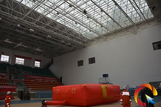 到場后,消防官兵發現一名男子蹲在體育館內20米高的鋼結構頂棚架子上,一手捂著臉,表情很凝重,一手扶著另一個鋼架。見狀,消防官兵立即在男子的正下方支起了兩米厚的救生氣墊。同時現場指揮員與到場民警一起與男子對話進行勸導,并聯系其家屬前來勸導,經了解該男子因向工地老板討要工資無果欲在此輕生。
