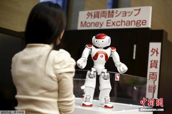 4月13日,在日本東京的一家銀行內,一個名為“Nao”的機器人為儲戶服務,提供實用信息。
