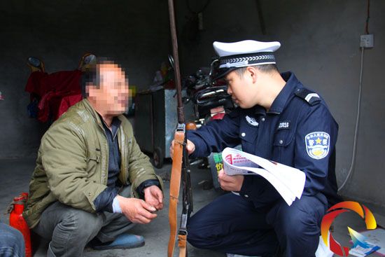 據介紹,當天上午10時許,為配合大隊摩托車飆車、非法改裝、無證駕駛專項整治行動,大隊宣傳民警以鎮石線旁的小田溪村村民為宣傳對象開展活動,到達目地時,天下起了陣雨,民警堅持打傘開展工作。在進入第一家居民家中時,發現兩名男子在車庫聊天,其中一名男子在給一把疑是“槍”的物件擦著防銹油。民警當即把“槍”控制,并對男子進行了詢問。給“槍”擦防銹油的男子劉某稱:“槍”是他前不久在返修老屋時從一個旮旯里得到的,當時銹跡斑斑,想著是老一輩留下的東西,就想清洗干凈傳給下一輩。民警當即指出,這是一種“槍支”,屬于管制物品,居民不能私藏。在民警的宣傳下,劉某認識到錯誤,愿意上繳“槍支”。