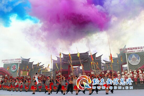 開幕式結束后,進行文藝表演。本次文藝表演主題為:《大美黔東南.神秘古且蘭》。