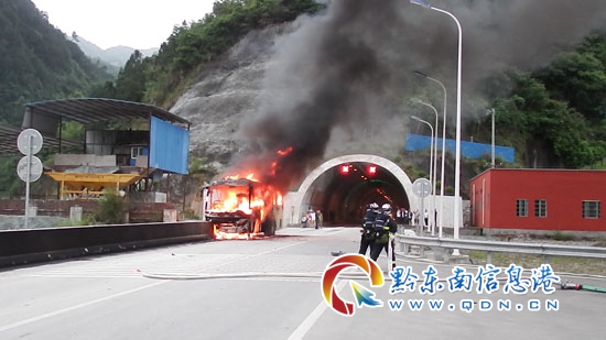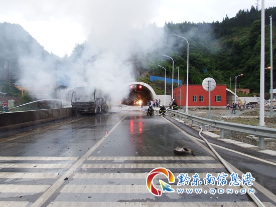 本網訊 5月21日18時21分,位于從江縣高增隧道口有一輛客車與摩托車相撞起火,有兩名受傷人員,情況緊急。消防官兵到場后經過10多分鐘的緊張救援,成功處置該起事故。