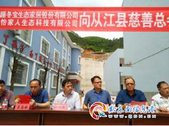 從江縣人民政府副縣長姚應東,縣政協副主席、縣工商聯主席楊懷武,縣慈善總會會長鄧仕雄,廣東睡冬寶生態家居股份有限公司總經理游秀仙等出席了此次捐贈儀式。