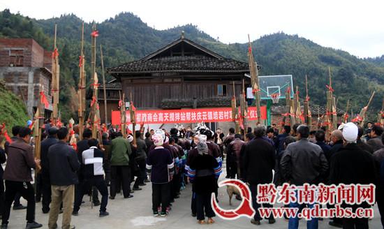 當(dāng)日下午,貴州洛貫經(jīng)濟(jì)開發(fā)區(qū)公安分局政委孟慶林,貴州省福建商會(huì)高天攪拌站董事長(zhǎng)林苗團(tuán)、總經(jīng)理吳彬,慶云鎮(zhèn)黨委書記李建明等一行來(lái)到培巖村驗(yàn)收該村5至9組通組公路硬化工程。培巖村全體村民知曉援建5至9組通組公路硬化工程的愛心人士將要到來(lái),早早集中在村中文化活動(dòng)場(chǎng)所等候。以放禮炮、吹蘆笙、唱侗歌等侗家人最高禮儀迎接著客人的到來(lái)。并把標(biāo)有“企業(yè)幫扶解民憂 攜手鋪就致富路”的錦旗贈(zèng)與了高天攪拌站愛心人士。在項(xiàng)目竣工儀式上,參加竣工儀式的人員一起步行檢驗(yàn)了工程建設(shè)情況,孟慶林政委、李建明書記、培巖村支書石國(guó)珍分別在儀式上表達(dá)了對(duì)愛心企業(yè)幫扶的感激之情,號(hào)召?gòu)V大群眾在致富路修通之后,奮發(fā)圖強(qiáng),眾志成城打贏脫貧攻堅(jiān)戰(zhàn),實(shí)現(xiàn)同步奔小康。吳彬總經(jīng)理在儀式上表明了該企業(yè)在脫貧攻堅(jiān)路上的責(zé)任與擔(dān)當(dāng),并表示將繼續(xù)盡其所能在捐資助學(xué)、基礎(chǔ)設(shè)施建設(shè)、產(chǎn)業(yè)扶貧等方面幫扶培巖村,攜手共進(jìn)奔小康。