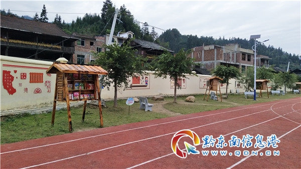 本網訊 為了使學生方便、快捷、有序閱讀到自己喜愛的圖書,養成閱讀的良好習慣,營造好讀書、讀好書的良好氛圍,從江縣斗里鎮中心小學今年在校園內修建圖書亭6個。