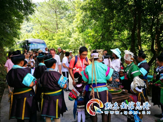 本網訊 7月22日,記者從貴州省丹寨縣清江苗寨了解到,貴州財經大學公管學院副院長曾宇航帶隊“2017年中、德、南非‘社區參與領導藝術’學術夏令營”師生一行30人到清江苗寨考察。