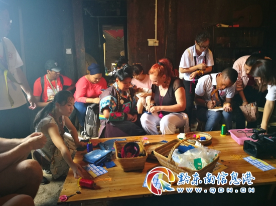 據悉,該夏令營一行到清江苗寨就農文旅扶貧和產業扶貧治理進行考察,親臨體驗到了苗族攔門酒、苗族刺繡,苗族扎染、古法造紙,考察了清江苗寨稻田養魚、鉤藤種植、七彩山雞產業扶貧項目。與此同時,分別聽取了丹寨縣有關部門、清江村村干部介紹丹寨非遺文化、清江苗寨農耕文化、“翻鼓”文化傳承與保護,清江社區治理情況與經驗。