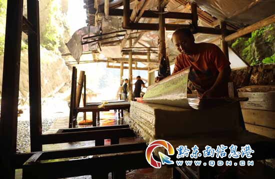 本網(wǎng)訊 丹寨縣石橋村外的天然溶洞白皮紙作坊,是目前貴州省保存較為完好的古法造紙作坊之一,洞內(nèi)很多傳統(tǒng)造紙?jiān)O(shè)施設(shè)備傳承已超過(guò)百年。當(dāng)?shù)卦旒埞そ持两襁沿用著自唐代以來(lái)的古法造紙工藝,利用溶洞內(nèi)冬曖夏涼的恒溫氣候及洞內(nèi)天然的優(yōu)質(zhì)水源,生產(chǎn)出了白皮紙、國(guó)畫(huà)紙、古籍書(shū)籍修復(fù)紙、花草紙等各類(lèi)傳統(tǒng)紙制品,銷(xiāo)往國(guó)內(nèi)及出口日本、韓國(guó)、東南亞等地,古老的洞中造紙作坊也成為旅游者青睞的觀光景點(diǎn),使更多的人了解原汁原味的古法造紙技藝,讓這項(xiàng)工藝得以傳承和發(fā)展。
