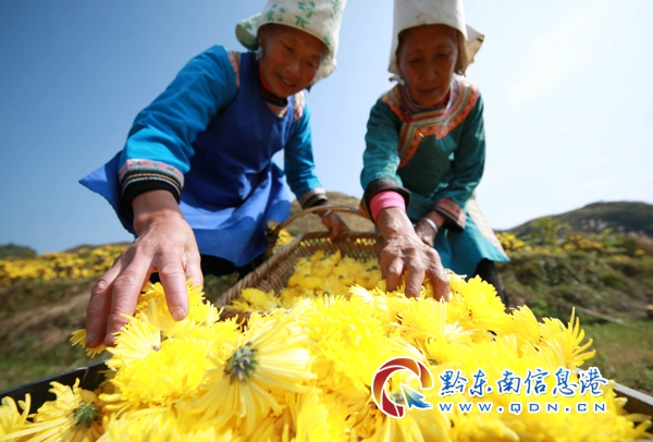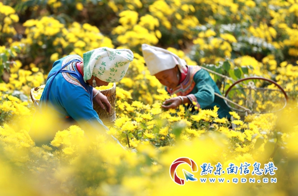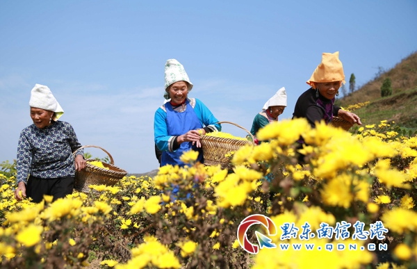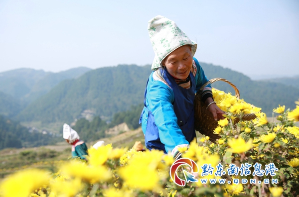 本網(wǎng)訊 近日,貴州省黔東南苗族侗族自治州丹寨縣興仁鎮(zhèn)白頭村引進(jìn)試種的200余畝藥用菊花進(jìn)入盛花期,當(dāng)?shù)孛缱迦罕姄屪デ绾锰鞖忾_始采摘、運(yùn)輸、銷售,花田里一派繁忙的景象。