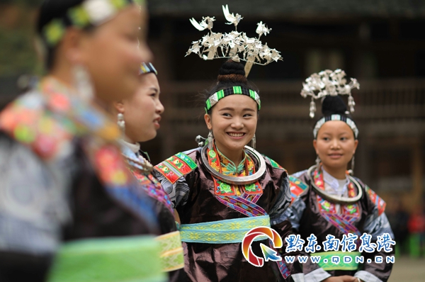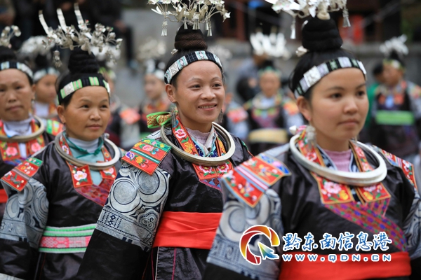 11月14日,貴州省黔東南苗族侗族自治州丹寨縣揚武鎮(zhèn)爭光村,蘆笙場上快樂的苗族婦女。