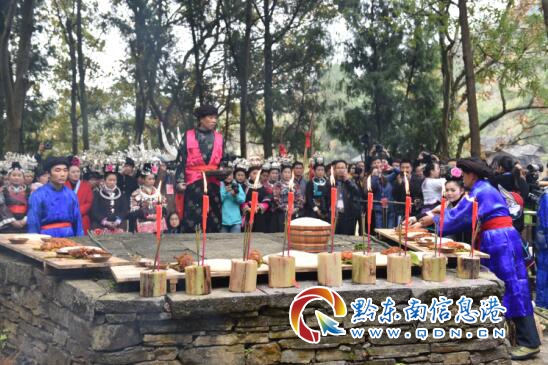 祭祀高臺旁,丹寨八大苗族支系身著盛裝歡聚一堂、載歌載舞,蘆笙悠長、美酒飄香,喜迎四方賓客。