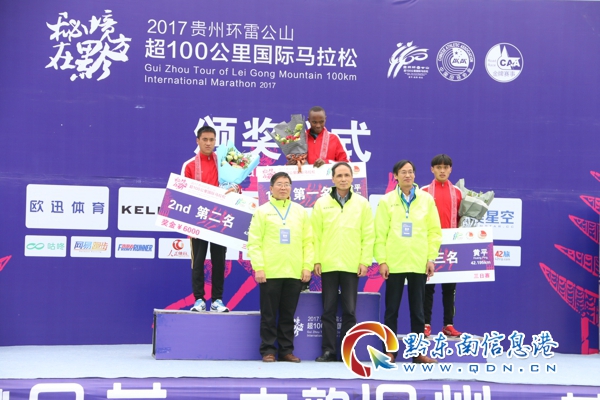 本網訊 (記者 田應龍)11月24日,2017貴州環雷公山超100公里國際馬拉松在黃平縣舊州鎮且蘭文化廣場鳴槍開賽。來自中國、英國、瑞典、肯尼亞等13個國家和地區的800余名海內外馬拉松選手及愛好者參加三日賽和單日賽。經過激烈的比賽,最后來自肯尼亞的選手Peter Kiama Ndungu和中國的選手姚妙分別獲得黃平賽段男、女子組冠軍。