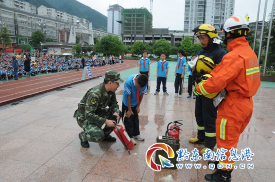 在消防安全知識課上,劍河縣消防中隊教官向師生們介紹了如何預防火災的安全常識,并從最近幾起重大的消防事件講起,強調加強消防意識的重要性;消防民警還對滅火器的使用進行了詳細的講解和示范,并組織教職工、學生進行初期火災撲救演練和高樓層逃生演練,鼓勵教職工和學生親身體驗滅火器和逃生培訓,從而加深師生對滅火器材使用方法和自救方法的印象。
