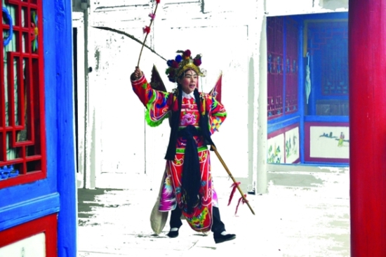 今年農歷六月十九,是劍河縣磻溪鎮小廣侗寨村民們趕廟會的日子。這一天天剛蒙蒙亮,戲班藝人們便早早地起了床,聚集在存放戲服和演出道具的老房子里,忙著化妝、穿戴、整理道具,一絲不茍,他們要為前來趕廟會的鄉親們表演《穆桂英掛帥》和《大戰長板坡》等歷史故事劇目。