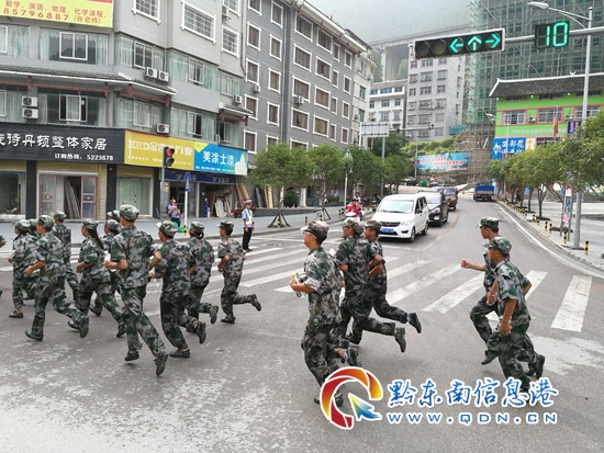 8月31日上午8時30分,拉練活動正式開始,在拉練過程中,劍河交警大隊執勤民警以學生行進路線為軸心,在拉練隊伍行進線路上的各個主要路口設置錐筒、警戒帶,采取對活動路段實施分段臨時交通管制的措施,全程為學生拉練保駕護航。