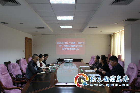 本網訊 10月24日,劍河縣2017年 “習酒·我的大學” 公益助學金發放儀式在縣行政中心二樓會議室舉行,團縣委相關人員、習酒公司駐劍河縣負責人及受資助學生家長代表參加此次助學金發放儀式。
