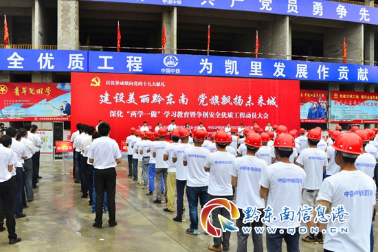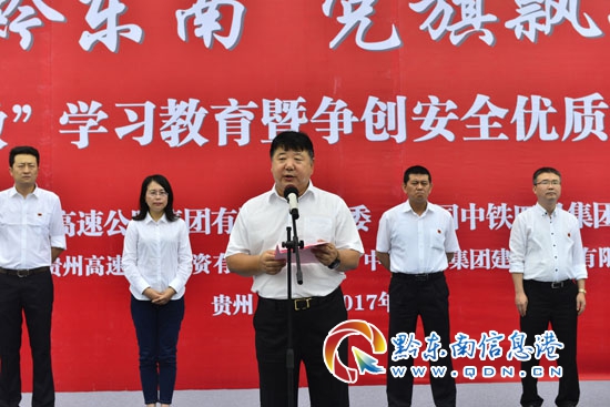 本網訊 (何飛 李愛林 記者 楊懿)2017年5月23日,由貴州高速公路集團有限公司黨委和中國中鐵四局集團有限公司黨委共同主辦,貴州高速公路投資有限公司黨委和中鐵四局集團建筑工程有限公司黨委承辦的“建設美麗黔東南、黨旗飄揚未來城”深化“兩學一做”學習教育暨爭創安全優質工程動員大會在凱里“未來城”城市之門項目工地隆重舉行,貴州高速公路集團有限公司集團公司黨委委員、紀委書記石磊,凱里市委副書記朱漢琴,貴州高速公路投資有限公司董事長、總經理陳虎,中國中鐵四局集團有限公司黨委書記、董事長張河川、黨委副書記、紀委書記袁敏以及相關部門負責人、參建單位員工代表和農民工代表共190余人參加動員大會。