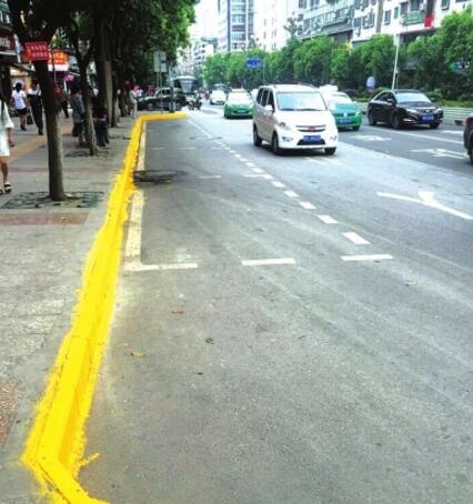 韶山南路州醫院路段已施劃的黃線