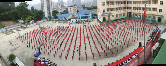 在表演中,上千名學生個個身著整齊帥氣的服裝,精神抖擻、情緒高漲,他們用一段段動人的旋律在舞動,用青春、歡快的舞步,跳出了當代小學生活潑、樂觀、團結、友愛的精神風貌。