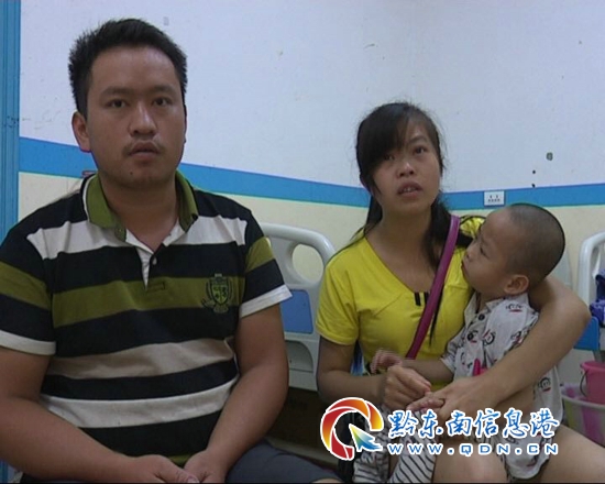 在黔東南紅州兒童醫(yī)院康復(fù)科病房里,楊大哥和愛(ài)人滾大姐正在病床上給他們?nèi)龤q多的兒子按摩。