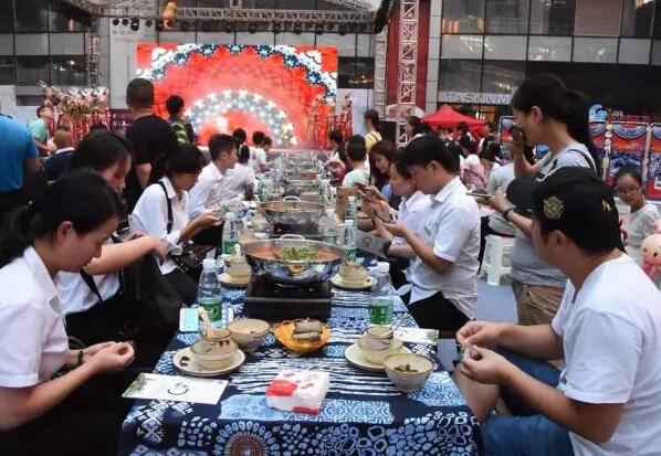 凱里市城市旅游推介團隊為長沙市民帶來了一場苗侗文化盛宴,天籟般的侗族大歌、盛世銀妝歌舞、節奏輕快的苗族錦雞舞等精彩紛呈的凱里特色節目在長沙德思勤商業區廣場上演,贏得現場觀眾陣陣掌聲。地道的凱里酸湯魚、農家臘肉等凱里美食擺上長達二十多米的長桌宴,百余位美食愛好者同時現場品鑒,讓長沙市民大飽口福。