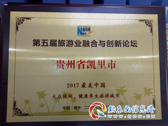 經專家組評審,凱里市“大健康”、“大旅游”發展迅速,“大健康+旅游”融合發展成效顯著,決定授予凱里市2017最美中國“大眾休閑·健康養生旅游城市”稱號。