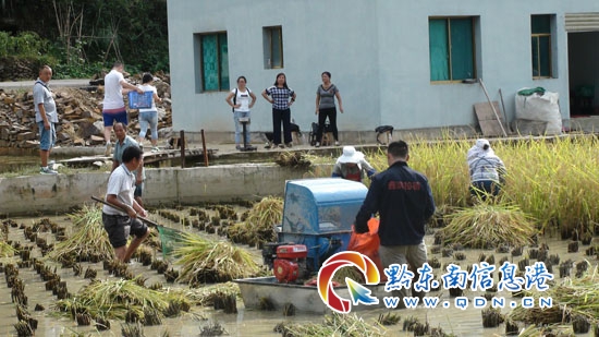 9月19日,州市農業部門對三棵樹鎮南高村農民專業合作社實施的生態稻魚工程示范項目進行實地臨田測產驗收。選取1.3畝田塊進行實地測產驗收。經測算:水稻出田產量650公斤,折畝產值達2052.5元;放養鯉魚10公斤,成活率90%,產量74公斤,產值2960元,兩項實現畝產值5012.5元。經專家測算,凱里市今年在5個鎮1個街道實施“稻魚工程”1.85萬畝,預計增收 5476萬元。稻魚工程成為群眾增收致富的新亮點。(吳治安)