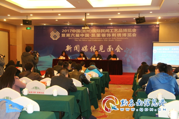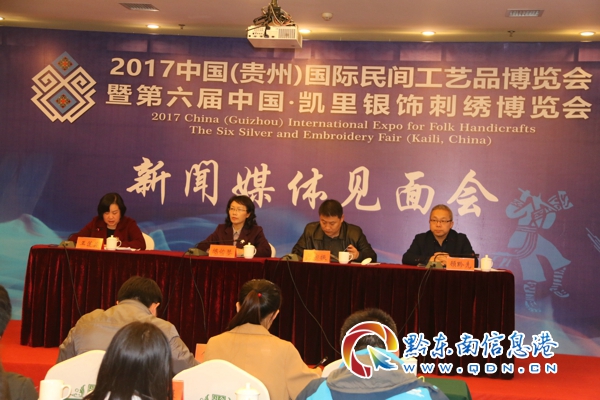 本網訊 (記者 田應龍 萬杏)相約在“大美黔東南”,相聚在“苗侗明珠·山水凱里”。11月16日下午,2017中國(貴州)國際民間工藝品博覽會暨第六屆中國·凱里銀飾刺繡博覽會新聞媒體見面會在凱里中瑞天禧酒店舉行。人民日報、新華社、中新社、中央電視臺、黔東南信息港,以及香港商報、國際商報等近40家境內外新聞媒體前來采訪報道今年博覽會。