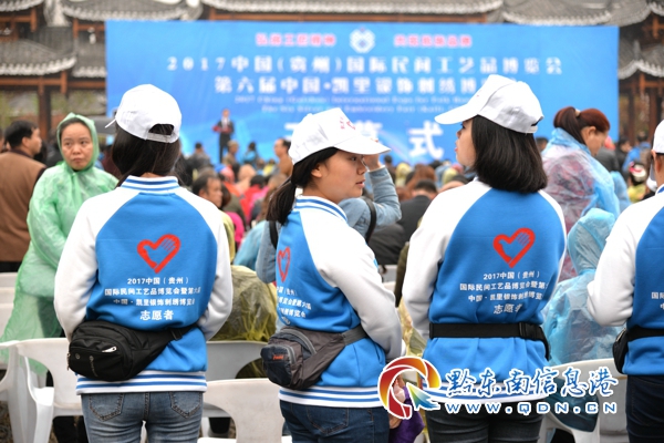 本網訊 11月17日,以“弘揚工匠精神,共筑民族品牌”為主題的2017中國(貴州)國際民間工藝品博覽會暨第六屆中國·凱里銀飾刺繡博覽會在凱里苗侗風情園隆重開幕。開幕式上,42名志愿者活躍在活動現場,為博覽會的各個環節提供志愿服務,成為博覽會上一道靚麗的風景。