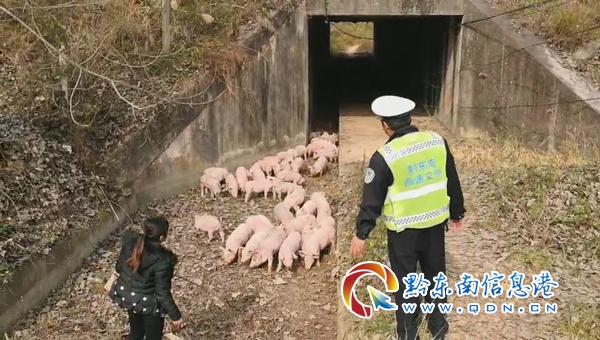 雜草堆、邊溝里、涵洞下.....民警通過半個多小時的努力,最后成功的將小豬仔全部找齊,交由車主及隨車人員看管,并聯系車輛進行轉運。