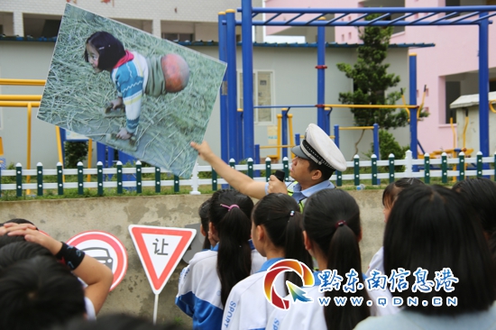 宣傳民警結合山區小學生出行的實際和小學生的身心特點,課前充分準備,做到因人施教、因材施教,通過采取講故事、模擬游戲等教學方式,寓教于樂,課堂中與學生互動,向廣大師生宣講涉及小學生常見的交通安全常識。同時還結合發生在學生身邊的典型交通事故案例進行講解,通過故事分析調動學生參與教學的積極性,創設情境,一幕幕慘烈的事故畫面讓在場的學生充分認識到交通事故的危害,讓學生懂得,交通事故就在我們身邊,但只要掌握在往返校園路途中如何行走、如何乘車等交通安全常識,交通事故是完全可以避免的。