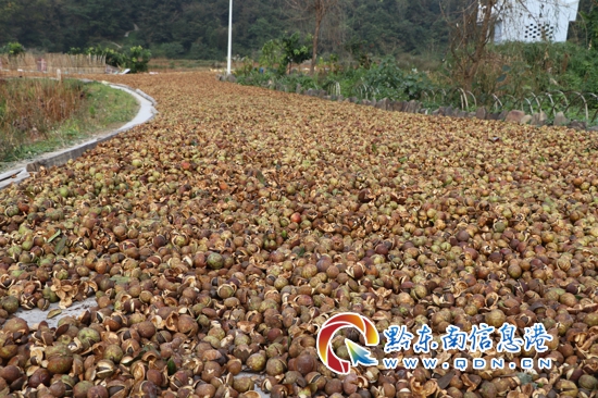 近日,高屯2萬余畝油茶喜獲豐收。筆者走在高屯街道鄉村遍野,隨處可見油茶戶們忙著摘茶果,撿茶籽,八舟、絞便、小里、高屯、秧南等村的生產便道曬滿了金黃色的茶果,匯成十里油茶果廊,前來詢價采購的油茶商隨處可見。走在侗都花果山油茶示范基地,映入眼前的是銀白色的千畝茶花,隨處可聞到沁入人心的花香,吸引了周邊縣市許多游客前來賞花嘗蜜。