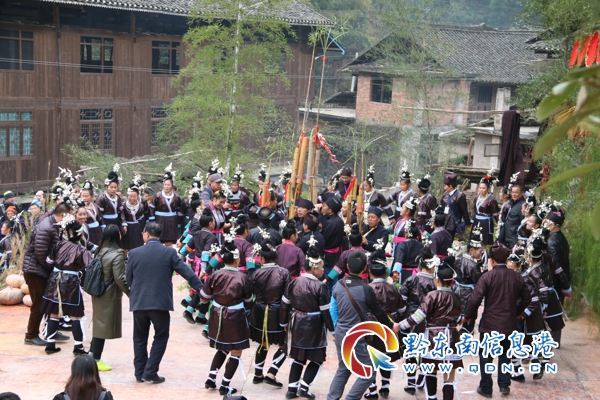本網訊 (記者 田應龍) 12月8日,以“歡歌盛世·相約中蘭”為主題的2017 第三屆勉王歌節在黎平縣中潮鎮上黃村中蘭侗寨開幕;顒赢斎,中蘭侗寨的村民與附近村寨的村民歡聚一堂,唱侗歌,喝米酒,共慶佳節。