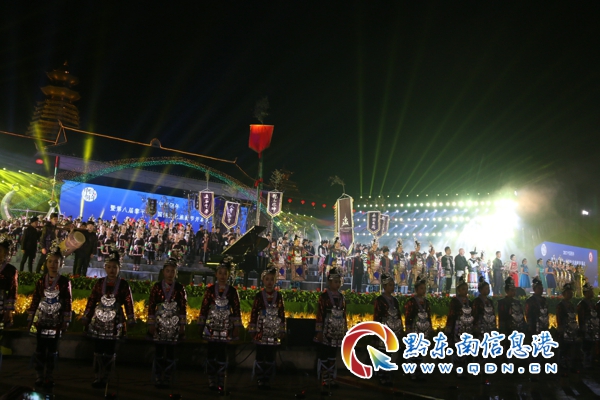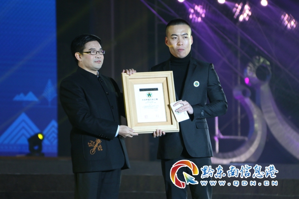 晚會現場,黔東南州委常委、州委宣傳部部長,州委統戰部部長潘玉鳳為黎平縣萬人侗族大歌合唱團組成授牌,上海音樂學院、貴州省體育局、貴州旅游商會分別授予黎平縣“上海音樂學院黎平縣少數民族傳統音樂采風創作基地” “貴州省劃騎跑運動基地”“貴州省摔跤訓練基地”和“貴州省自駕聯盟黎平縣自駕游基地” 匾牌。