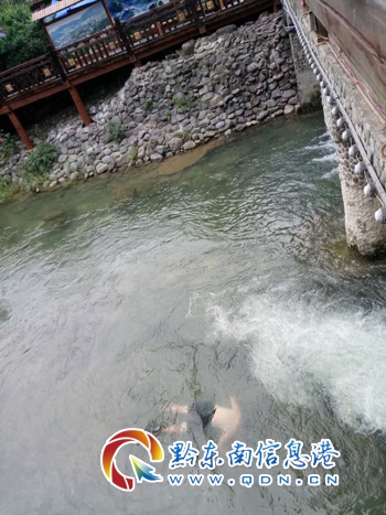本網訊 6月10日9時20分,西江專職消防隊接到一名省外游客求助電話稱:因和愛人在景區四號風雨橋上拍照,不慎將其車輛鑰匙掉入河里,請求幫助找回鑰匙。