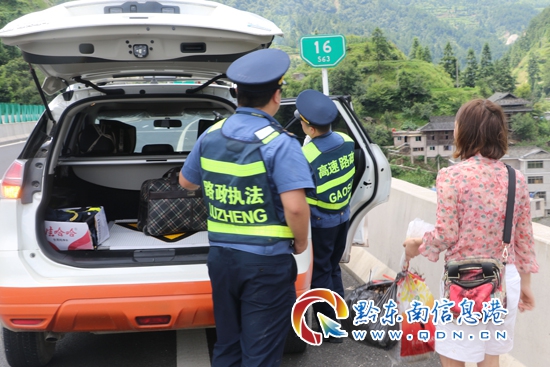 本網訊 7月23日中午,凱雷高速(S63)沿線驕陽似火,暑氣逼人。凱里高管處雷山路政執法大隊巡查至K16+000上行處發現有母子2人在高速公路上被甩客神色慌張,不時向過往車輛招手示意,雷山路政及時救助排除險情。