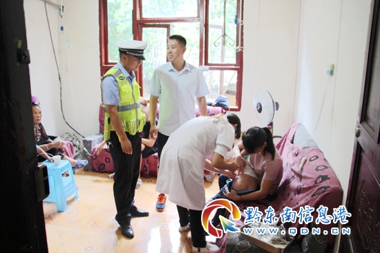 了解情況后,輔警陽繼鵬立即駕駛警車,僅10分鐘的時間,就將孩子送到西江鎮人民醫院。據孩子父親裘先生介紹:他們一家是從江西自駕到西江“千戶苗寨”來旅游的,當日中午,一家人從景區游玩后出來,孩子全身發癢,開始以為孩子只是被蚊蟲咬了,后來打開孩子衣服才發現孩子全身起來皰疹,加之這幾天孩子高燒一直不斷,全家一下子慌了神。由于正值周末景區旅游客流高峰,乘車人排成了長龍,景區內都是分段搭乘,還需要步行一段路,看見路口有交警執勤,就趕快抱孩子上前求助。