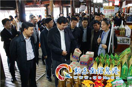 圖為省、州、縣領導及電商企業參觀雷山電商