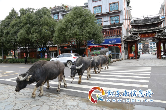 雷山楊老九的牛走斑馬線部隊 李雪 攝