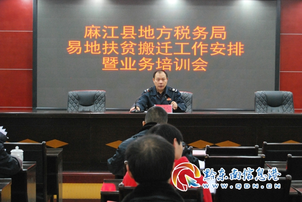 本網訊 繼麻江縣易地扶貧搬遷工作會議召開后,縣地稅局迅速掀起了學習貫徹會議精神熱潮,于12月6日上午,在局六樓三號會議室召開異地扶貧搬遷工作安排暨業務培訓會議,全局21位幫扶干部參加會議。