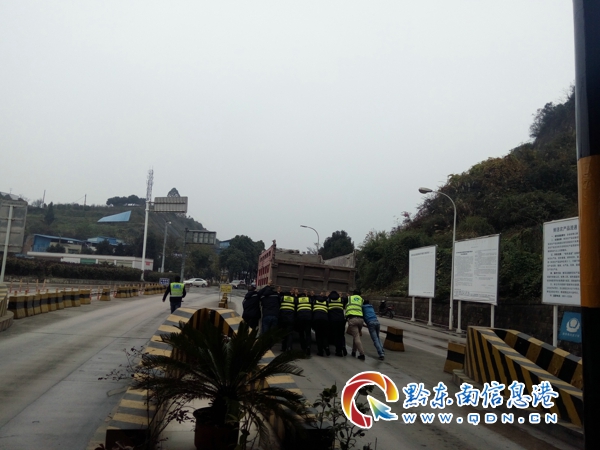 12月6日中午時(shí)分,正是麻江收費(fèi)站車(chē)流高峰期,也是收費(fèi)員輪換吃午飯的時(shí)間,一輛車(chē)牌號(hào)為貴HS的藍(lán)牌卡車(chē)在出口82車(chē)道繳費(fèi)完成后,不知什么原因車(chē)輛突然熄火,司機(jī)數(shù)次試圖啟動(dòng)都失敗了。“師傅,你的車(chē)是怎么了呀?有什么可以幫助您的嗎?”收費(fèi)員問(wèn)道。“我這車(chē)線路有問(wèn)題,特別難打火,我著急回家辦事呢,怎么辦呀?”司機(jī)面露難色的回答道。收費(fèi)員立刻叫當(dāng)班班長(zhǎng)蔣哥前來(lái)處理。蔣哥來(lái)到車(chē)道后,看到道路擁堵,并且?guī)煾敌募比缁穑懔⒓窗才女?dāng)班的男生來(lái)幫忙推車(chē),但是該車(chē)重達(dá)七噸,兩三個(gè)人根本推不動(dòng)。于是將情況迅速告知站長(zhǎng),當(dāng)時(shí)正是吃飯時(shí)間,由于情況特殊,站長(zhǎng)當(dāng)即呼吁大家放下手中的飯碗先去車(chē)道上幫忙。來(lái)到車(chē)道上后,司機(jī)配合的掛上空擋,調(diào)整方向盤(pán),人多力量大,大家一起使勁向前埋頭使勁往前推車(chē),在大家的團(tuán)結(jié)下,終于合力將車(chē)推到了百米外的收費(fèi)廣場(chǎng)邊上。之后,又幫助司機(jī)聯(lián)系上汽修廠的維修人員前來(lái)修理。