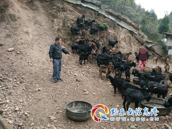 王德和同志深入貧困戶潘朝海家的羊圈了解羊的長(zhǎng)勢(shì)情況