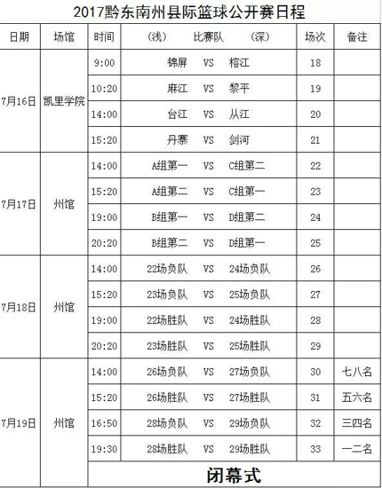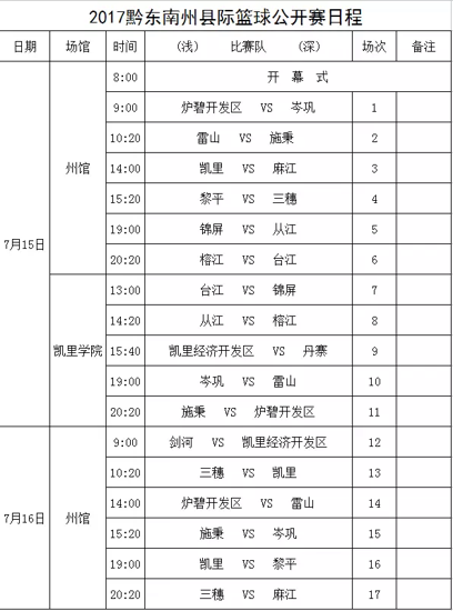 黔東南州2017年縣際籃球公開(kāi)賽日程