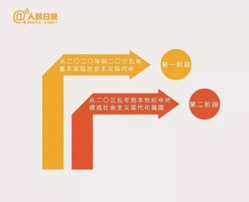分兩步走在本世紀(jì)中葉建成富強(qiáng)民主文明和諧美麗的社會(huì)主義現(xiàn)代化強(qiáng)國(guó)。
