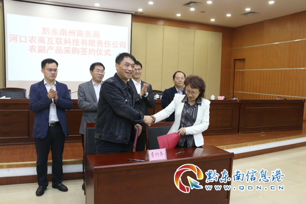 當天,還進行了黔東南州商務局河口農商互聯科技有限責任公司農副產品采購簽約儀式。